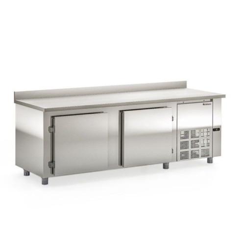 Heladera comercial con alzada posterior, ideal para usar contra pared. Refrigeraci贸n: Aire forzado con evaporador de aletas. Temperatura: +2 a +7C. Controaldor electr贸nico. Interior galvanizado y piso en acero inoxidable 430. Revestimiento externo: t apa: acero inoxidable 430. Descongelamiento autom谩tico. Resistencia en las puertas. Medidas: frente 2000, fondo 700, altura 900, con patas regulables