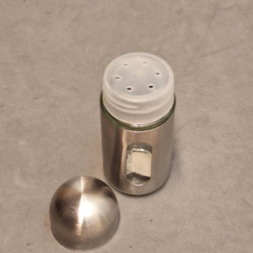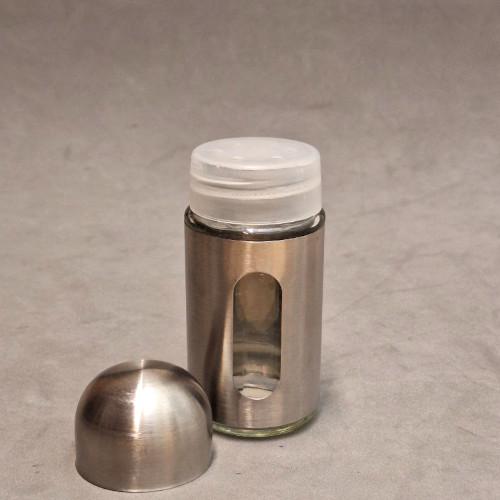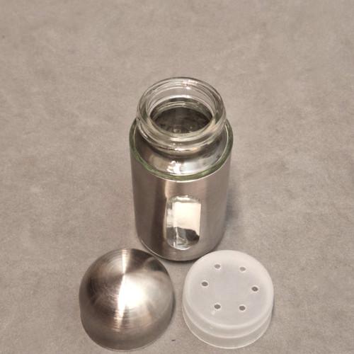 SALERO VIDRIO Y ACERO INOX, TAPA PLAST Y TAPA ACERO 9 X 4 CM - SPA24832