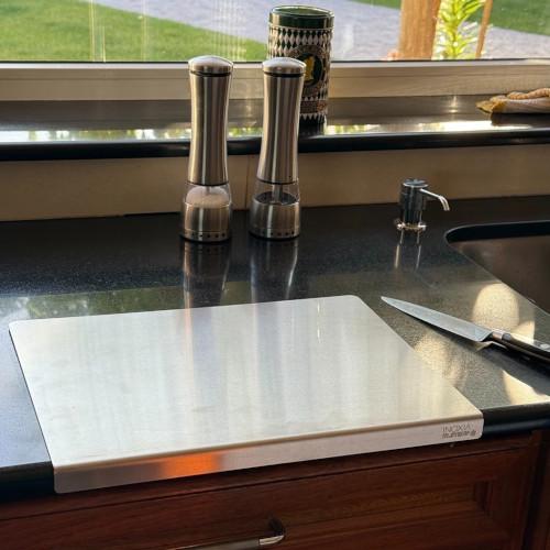 TABLA DE CORTE ACERO INOX 304 CON ZOCALO MED: 37 X 28