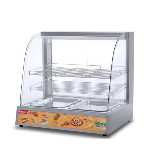 EXHIBIDOR CALEFACCIONADO PARA MANTENER ALIMENTOS CALIENTES. REGULADOR DE TEMPERATURA HASTA 80潞C. VOLTAJE 220V. POTENCIA 900W. 3 NIVELES DE EXHIBICI脫N CON 2 BANDEJAS INFARIORES Y 2 ESTANTES REJILLAS SUPERIORES. ESTRUCTURA ACERO INOXIDABLE Y LATERALES VIDRIO. MEDIDAS: FRENTE 63, FONDO 48, ALTURA 63 CM